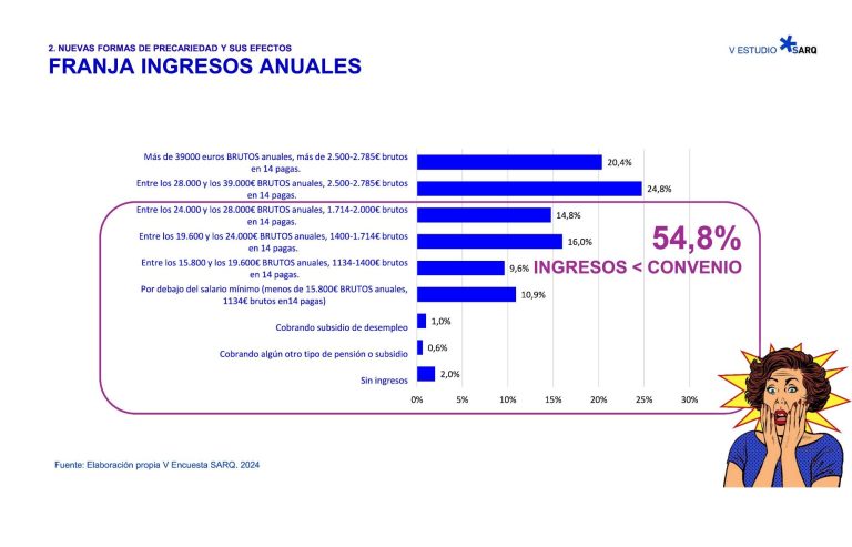 Esta primera radiografía se hace a partir del análisis de las 861 respuestas recogidas en la V Encuesta SARQ y ofrece una radiografía clara: mejoras formales en la contratación, sí, pero la precariedad sigue profundamente arraigada, con consecuencias directas sobre la salud, la motivación y la estabilidad de quienes ejercen la arquitectura en España.